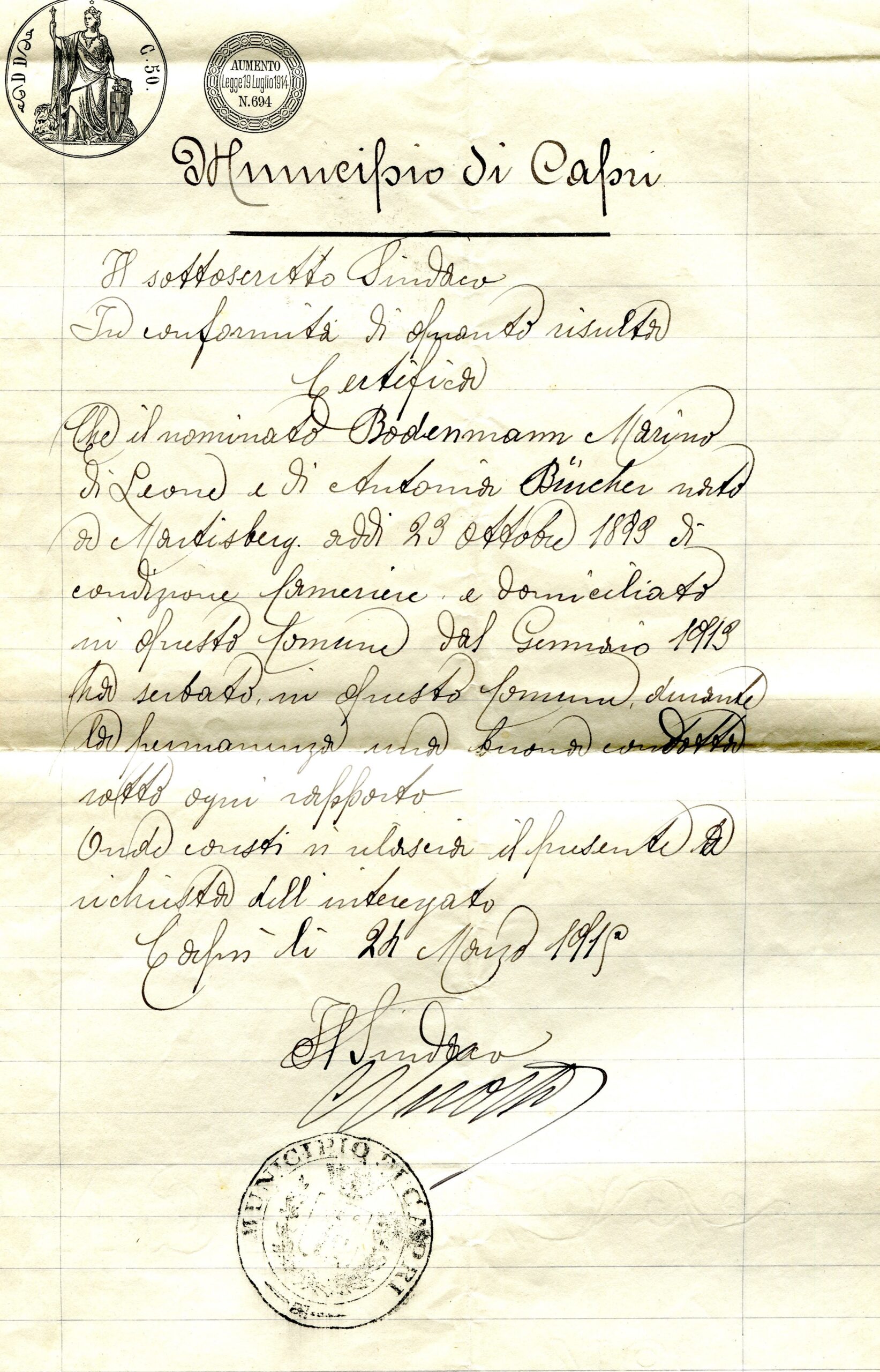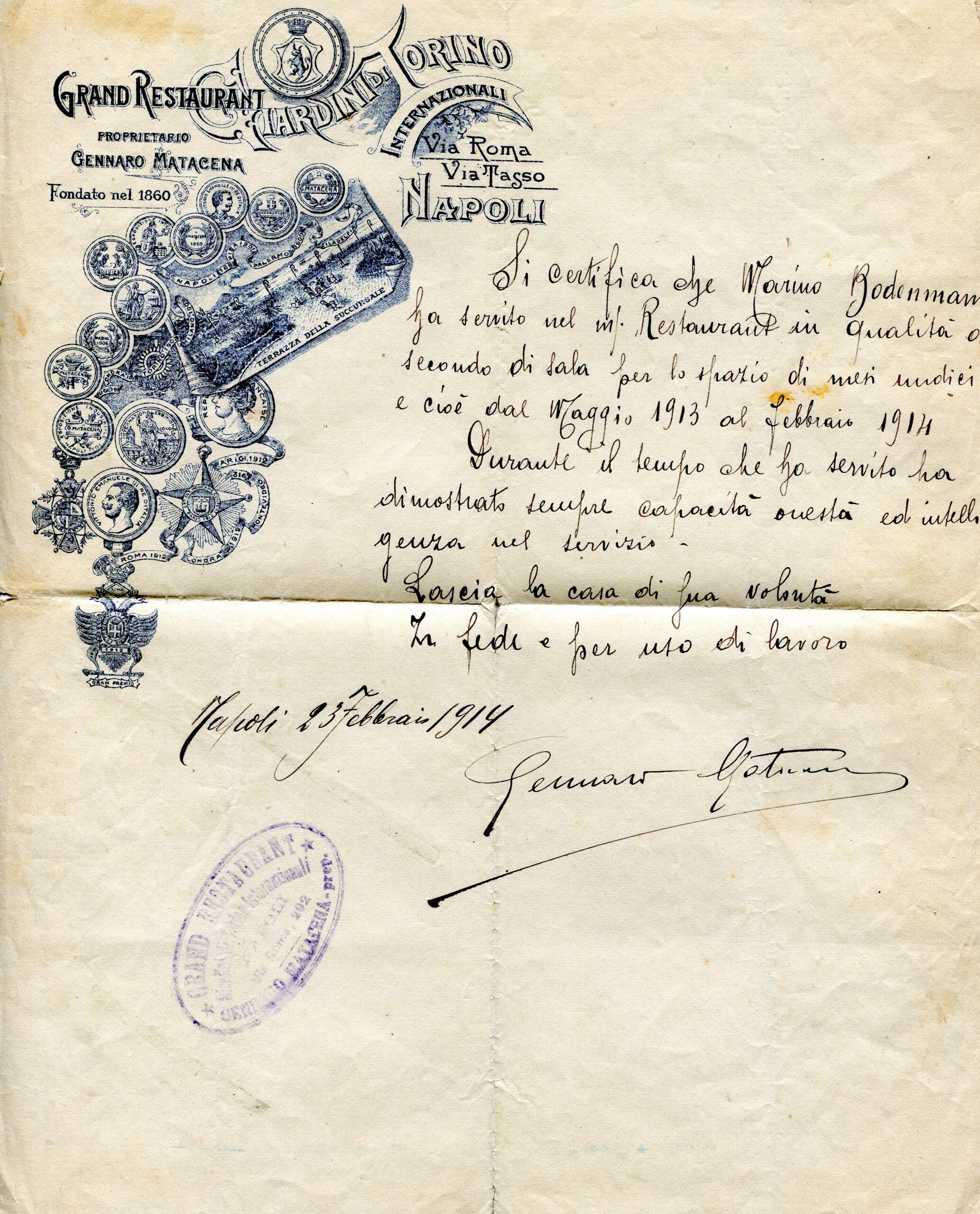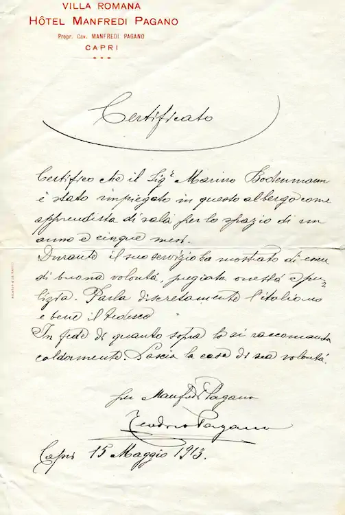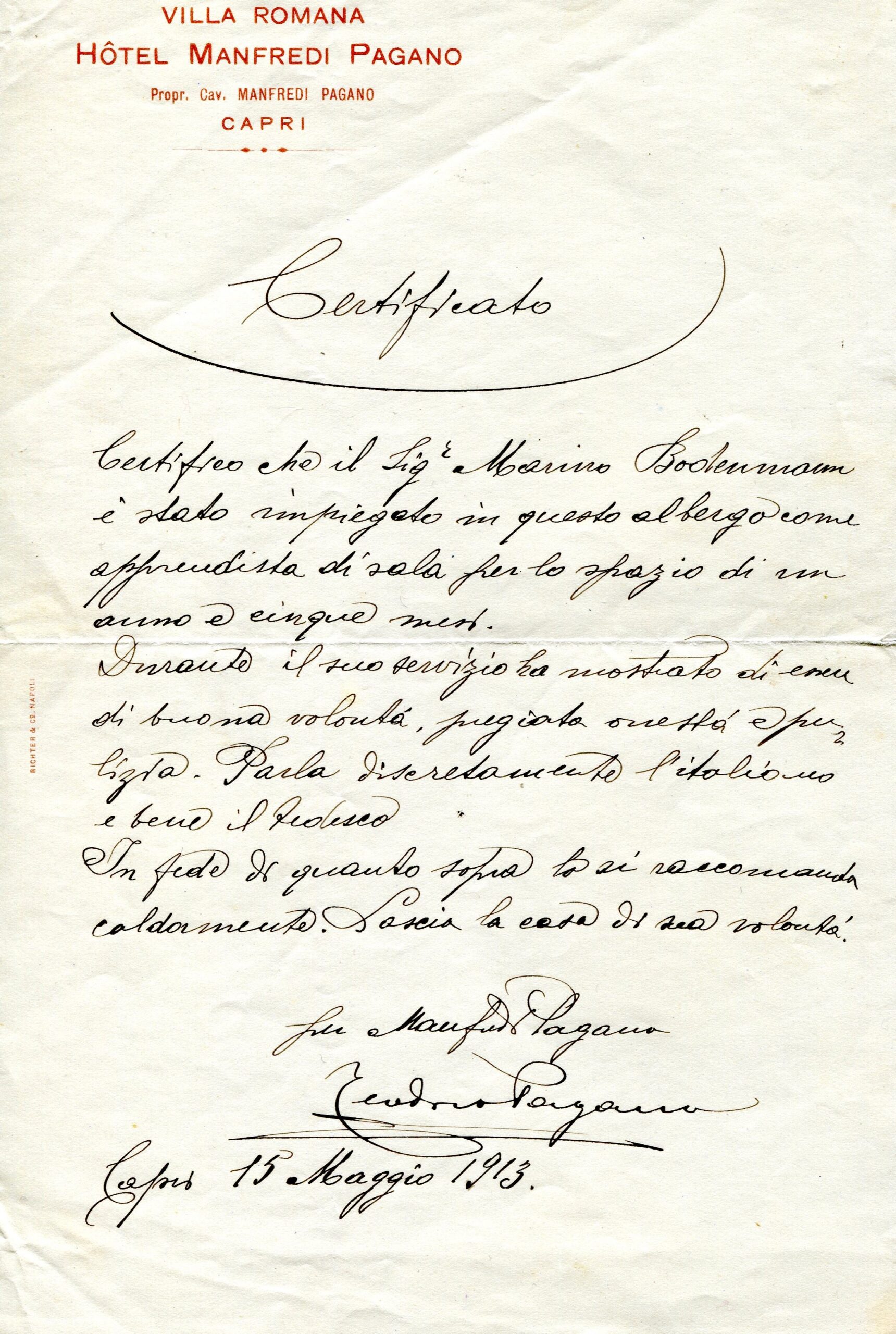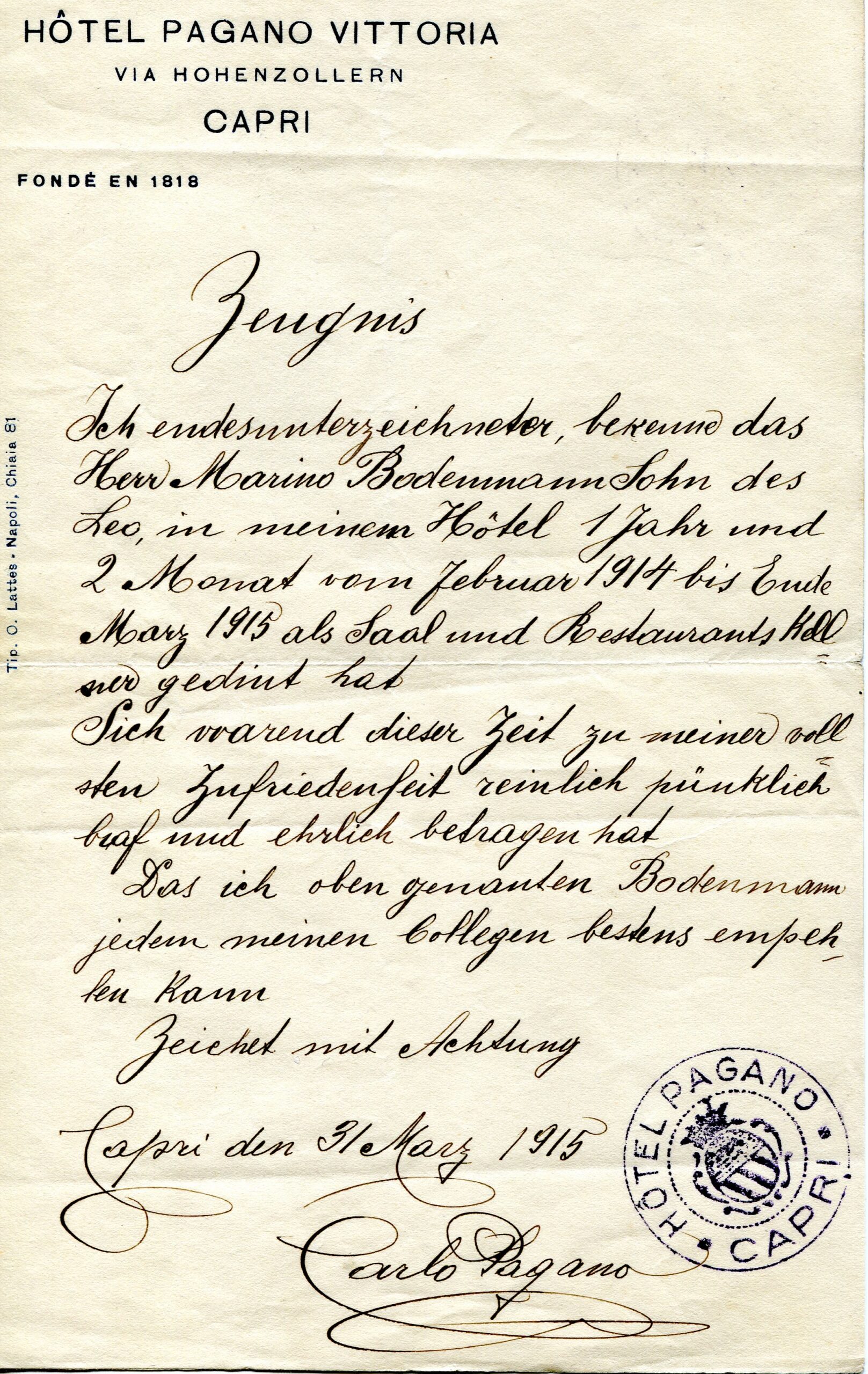 1913-1915 Arbeitszeugnisse Neapel-Capri